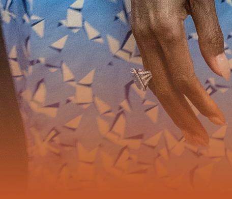 Transitioning from nursing to fashion, Mask embraced design as a medium of resilience and reinvention. Her avantgarde eveningwear, inspired by “Heaven, Hell and Purgatory,” examined the transition from good to evil through dramatic silhouettes and bold contrasts. Key pieces included an ombré blackand-white gown, a featheredwinged black mesh tee over jeans and flame-inspired bustiers crafted from resin, paired with feathered minis.