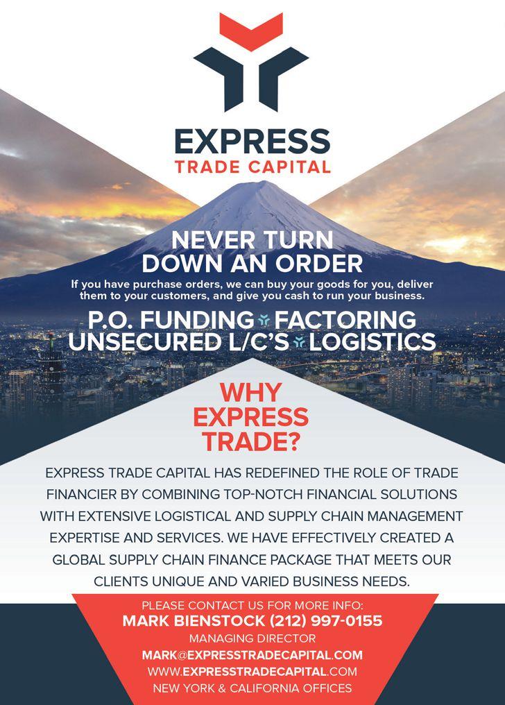 Our cover story features White Oak Capital Group’s new e-commerce division, which is a creative, aggressive and organized model. I must admit, I have lunch with Bob Grbic once a month just to keep up with White Oak and to share insights to think outside of the box. The fashion industry has changed a great deal during the 100-plus years my family has worked in the Garment District, and I applaude White Oak’s new approach. As my father always said, “The only thing constant in life is change.” The fashion industry still generates billions of dollars in basic factor and ABL loans, but you must adapt — White Oak has, and it’s so exciting to share this change with you all.