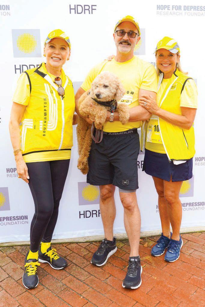 Katie Couric told a crowd of runners in the Village of Southampton, New York, “I stink at running so I’m going walk at the back of the race.” Te TV legend, who will launch her autobiography “Going Tere” this fall, was decked out in a bright yellow and black outft of which she quipped, “My husband said I looked like a bumblebee.” Te star served as the grand marshal of Audrey Gruss’s Hope for Depression Research Foundation’s 5K Race, which raised $325,000. Participants included Karen and Richard LeFrak, Jenny and John Paulson, Jamee and Peter Gregory and a man who ran while pushing a double baby carriage. Tere was also a slew of runners and their dogs including Janna Bullock with her best friend Sebastian, a Bernedoodle. Although Couric fnished at the back of the pack, she received a gold medal modeled after the Olympics when she crossed the fnish line, as did all of the other fnishing racers. www.raceofhopeseries.com