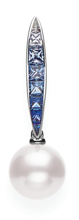 Kokichi Mikimoto successfully created the world’s first cultured pearls more than 125 years ago. Since then, his eponymous brand has become known for its luxurious pieces, which combine the cultured pearl with diamonds, stones and various metals. The Mikimoto Classic South Sea Collection features Black, Golden and White South Sea cultured pearls, elegantly framed by sparkling white diamonds and 18k gold detailing. While characterized as black, the rich, dark colors actually range from slate gray to pistachio with overtones of green, pink or blue. The golden pearls are produced by the golden-lipped oyster. Deep golden colored pearls are rarest of them all. Mikimoto’s Ocean Collection is inspired by the tranquil ebb and flow of water. Each piece features an Akoya cultured pearl paired with brilliant blue sapphires to symbolize the beauty of the crashing waves.