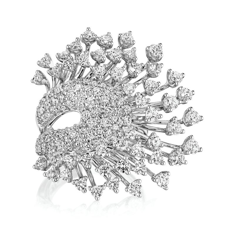 2) Netali Nissim double eye ring with black and white diamond pavé and quartz centers in 18k white gold. $4,500