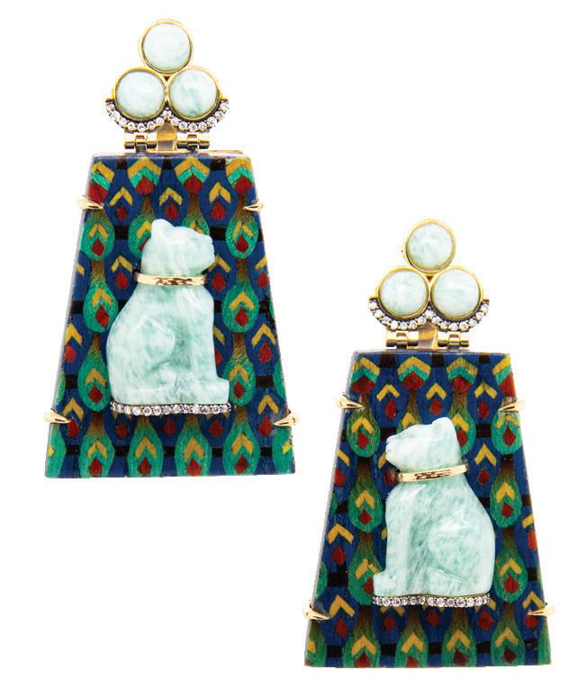 2) Silvia Furmanovich Egypt Marquetry Bastet earrings with diamond and amazonite in