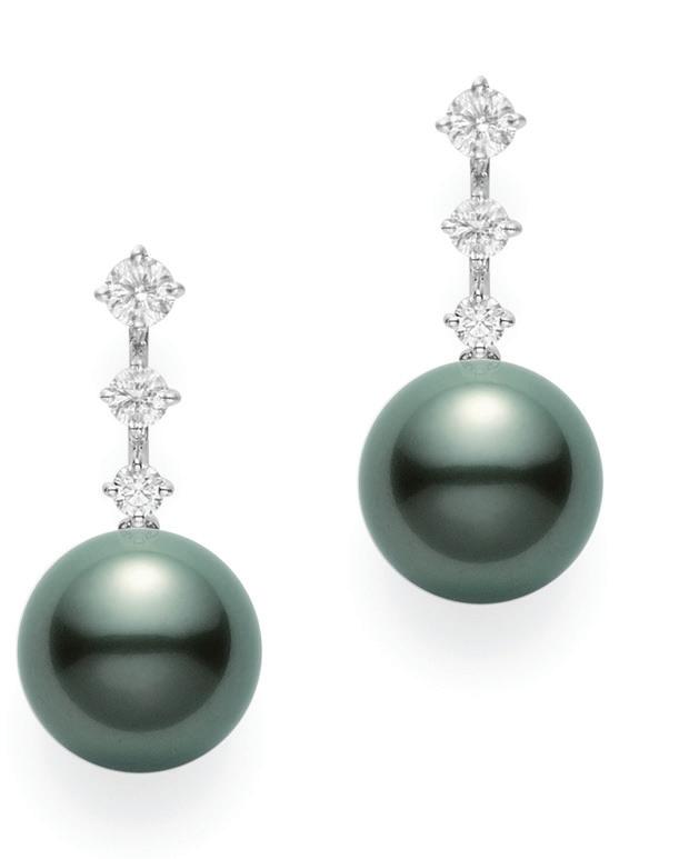 Clockwise from top left: From the Ocean Collection Akoya cultured pearls and sapphires earrings set in 18k white gold, $3,100; From the Ocean Collection Akoya cultured pearls and sapphires bracelet in 18k white gold, $2,300; Classic Golden South Sea cultured pearl earrings with diamonds set in 18k yellow gold, $11,000; Classic Black South Sea cultured pearl earrings with diamonds set in 18k white gold, $9,100; Classic Black South Sea cultured pearl cuff bracelet with diamonds set in 18k white gold, $9,500; Classic Golden South Sea cultured pearl cuff bracelet with diamonds set in 18k yellow gold, $9,800.