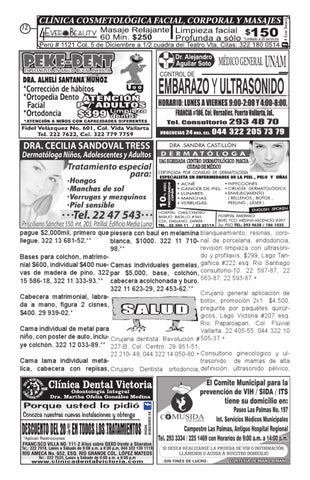 pague $2,000mil, primero que piesera con baúl en melamina blanqueamiento, resinas, corollegue. 322 13 681-52.** blanca, $1000. 322 11 710- nal de porcelana, endodoncia, revisión limpieza con ultrasoni98.** do y profilaxis, $299, Lago TanBases para colchón, matrimonial $600, individual $400 nue- Camas individuales gemelas, gañica #222 esq. Rio Santiago vas de madera de pino. 322 par $5,000, base, colchón, consultorio-10. 22 587-87, 22 15 586-18, 322 11 333-93.** cabecera acolchonada y buro. 563-87, 22 593-87.+ 322 11 623-29, 22 453-62.** Cirujano general aplicación de Cabecera matrimonial, labrabótox, promoción 2x1 $4,500, da a mano, figura 2 cisnes, pregunte por paquetes quirúr$400. 29 939-02.* gicos, Lago Victoria #207 esq. Rio Papaloapan, Col. Fluvial