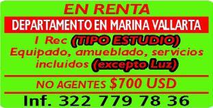 Marina Vallarta, 1 Rec, tipo estudio, amueblado, equipado, con servicios, no incluye luz $700 USD. 322 77 978-36.+