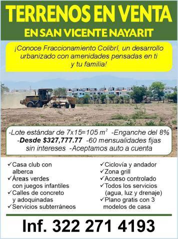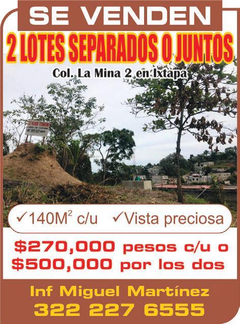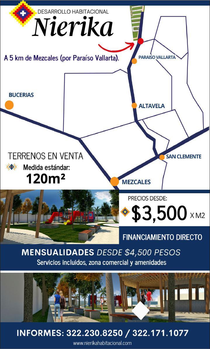 Mezcales, Paraíso Vallarta, 120 m2 lot, pre-sale $265,000 cash. Appointments to 322 17 110-77, 322 11 196-74.+