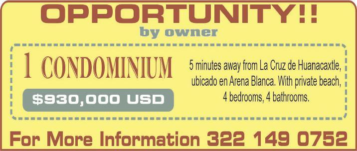 3 baños, club de playa, alberca, a unos pasos de la playa $879,000 USD. 322 10 699-11.+