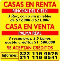 Rincón del Cielo, amueblada $19,000. 322 11 695-76.+