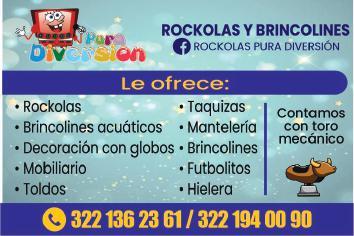 Brincolines y rockolas en renta, brincolines acuáticos, mobiliario, toldos, decoración con globos, taquizas, mantelería, toro mecánico. Informes. 322 13 623-61, 322 19 400-90.+
