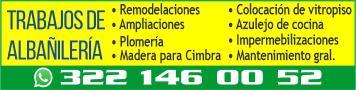 Trabajos de albañilería. Remodelaciones, ampliaciones, herrería, plomería, electricidad, colocación de vitropiso, azulejo de cocina, impermeabilización y mantenimiento en general. 322 14 60052.+