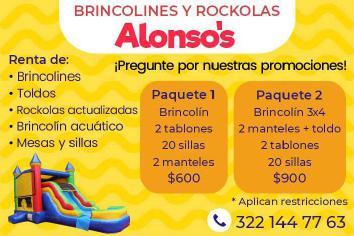 tos, toldos, mobiliario, brincolines. ¡Somos tu mejor opción! Contamos con paquetes de acuerdo a tus necesidades. Informes. 322 14 477-63.+