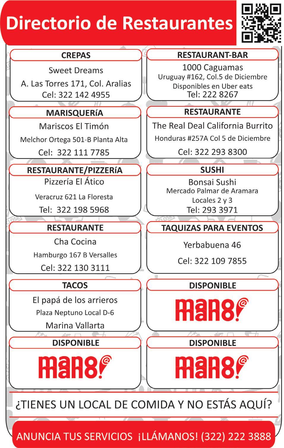 salidas jueves 10:00 p.m. Plaza del Pitillal. 322 22 995-95, 322 22 599-47.+