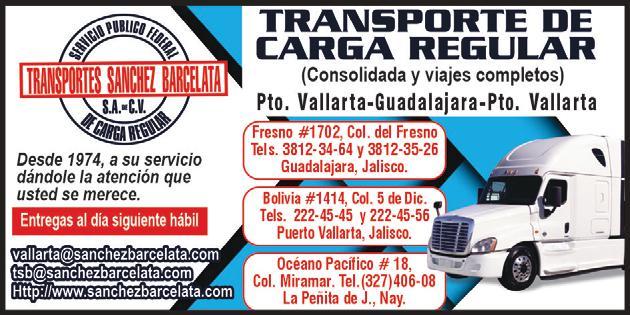 Servicio de paquetería, mensajería y carga regular en 24 horas, Puerto Vallarta, Guadalajara. 22 245-45, 22 245-56.+