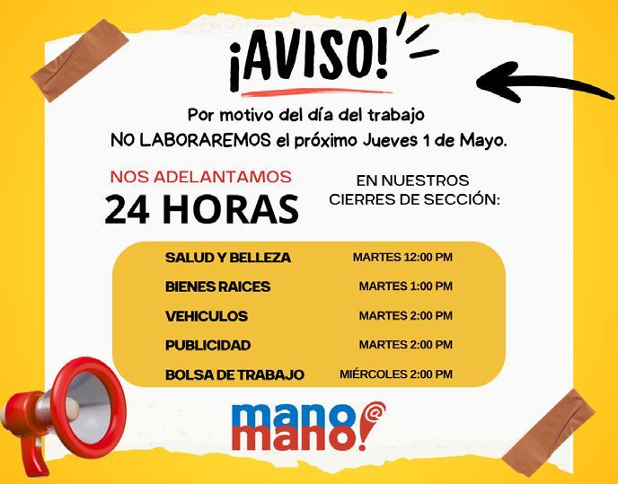 No asume ninguna responsablidad por la información y/o material proporcionado por nuestros anunciantes y lectores, ya que refleja la opinión de los mismos. Se prohibe la reproducción total o parcial del contenido sin autorización