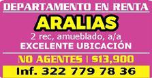 Aralias, amueblado, roomie, a/a, baño, no niños, no mascotas. $5,000. 322 13 826-38.*
