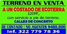 El Zancudo, 16x30 meters, with access to services. $480,000. 322 13 855- 03.+