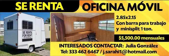 Col. Jardines del Puerto, 3x2 meters, for a doctor’s office or other office. $5,000 monthly. Info: 322 13 125-24 .