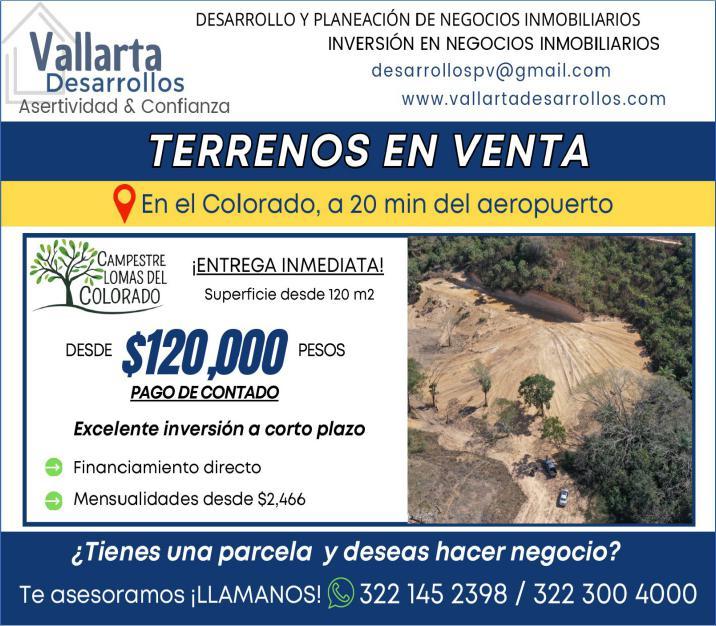In the Colorado. Rustic land of 144 m2, $120,000 pesos in cash. Appointments to 322 14 523-98, 322 30 040- 00.+