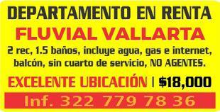 Fluvial Vallarta, 1 Rec., 2 baños, amueblado, cuarto de servicio con lavadora y secadora, PB. $20,000. 322 77 978-36.+