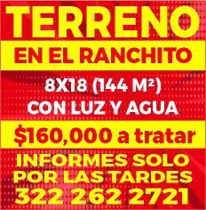 El Ranchito, 128 M2 land, rustic. $88,000 cash. Info . 322 14 523-98, 322 30 040- 00.+