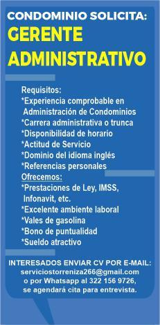 básico, experiencia en el puesto, disponibilidad de horario. Inf. 322 22 103-95.+