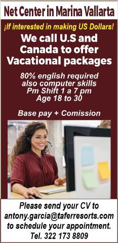 riencia atención al cliente, disponibilidad de horario. Inf. 322 22 481-41.+