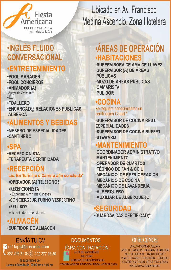 Solicitamos Steward y Cocina para zona Romántica. Envía tu CV o solicitud al. 322 15 62734.+