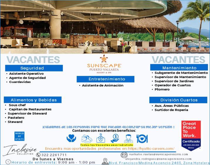 Solicitamos Steward y Cocina para zona Romántica. Envía tu CV o solicitud al. 322 15 627-