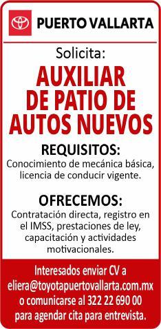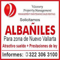 Área de Mismaloya, se solicita Ayudante de Albañil y Plomero con experiencia, hacer cita al. 322 10 996-98.+ Área de Nuevo Vallarta, soli-