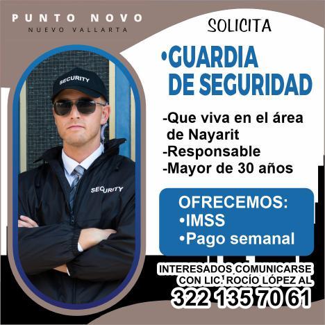 Solicito Agente de seguridad, con o sin experiencia, mayor de edad, turno completo de 8 hrs. Informes. 322 32 271-59.+