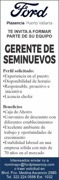 Estamos contratando Gestor, sueldo base + Comisiones. Comunicarse al. 322 26 619-25.+