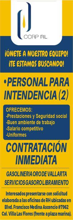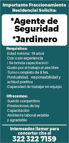 miento, Agente de Seguridad y Ayudante de Pulidor, interesados llamar al. 322 20 908-75, Ext. 122.+