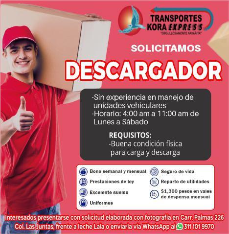 Solicito Descargador, licencia de manejo vigente. Inf. 311 10 199-70.+