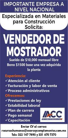 construcción, sueldo $3,693, $1,000 vales de despensa. Enviar tu CV recursoshumanos@ acerosycomplementos.com.mx tel. 322 14 774-90.+