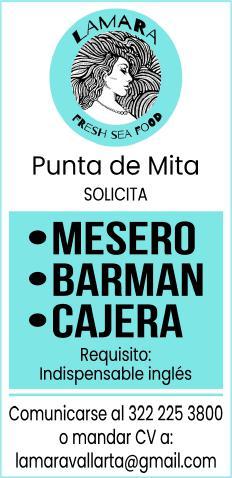 Se solicita ayudante de mesero. Citas al. 322 22 105-60, 322 22 108-71.+