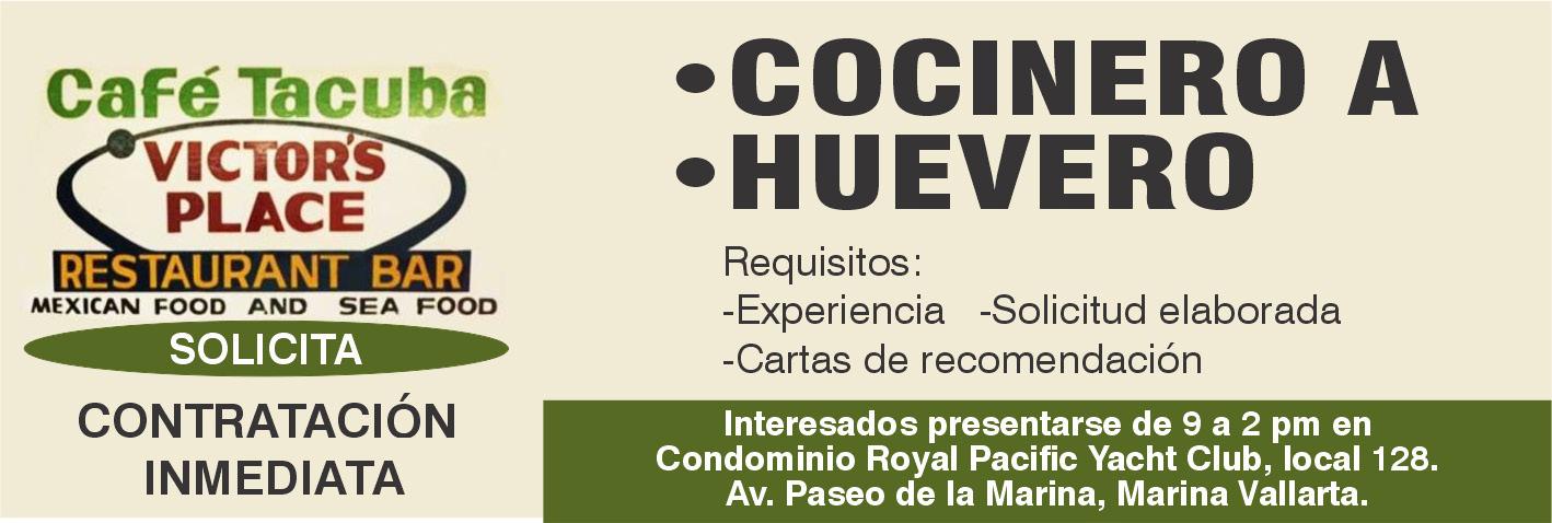 Se solicita: Cocinero B para desayunos, experiencia, responsable, contratación inmediata. Interesados llamar al. 322 13 783-94.+