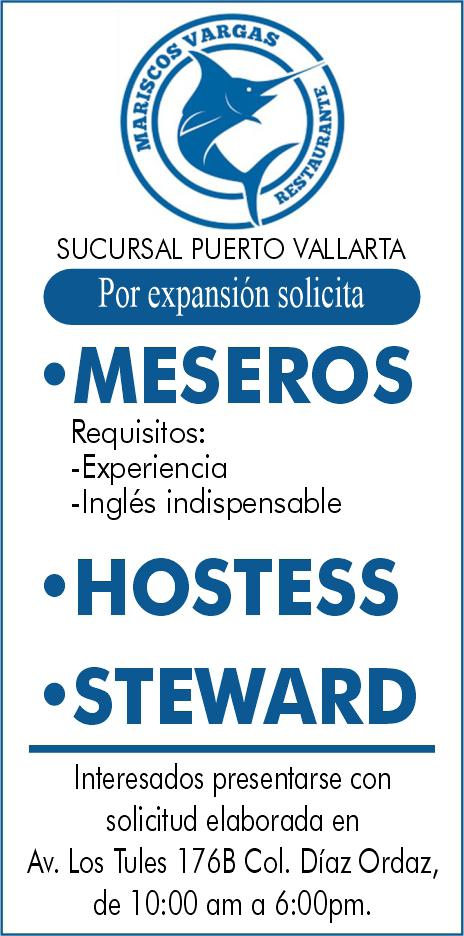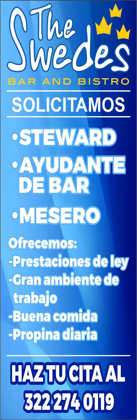 nimiento, pizzero, steward, mesero. Presentar solicitud elaborada. Inf. 322 29 704-03.+