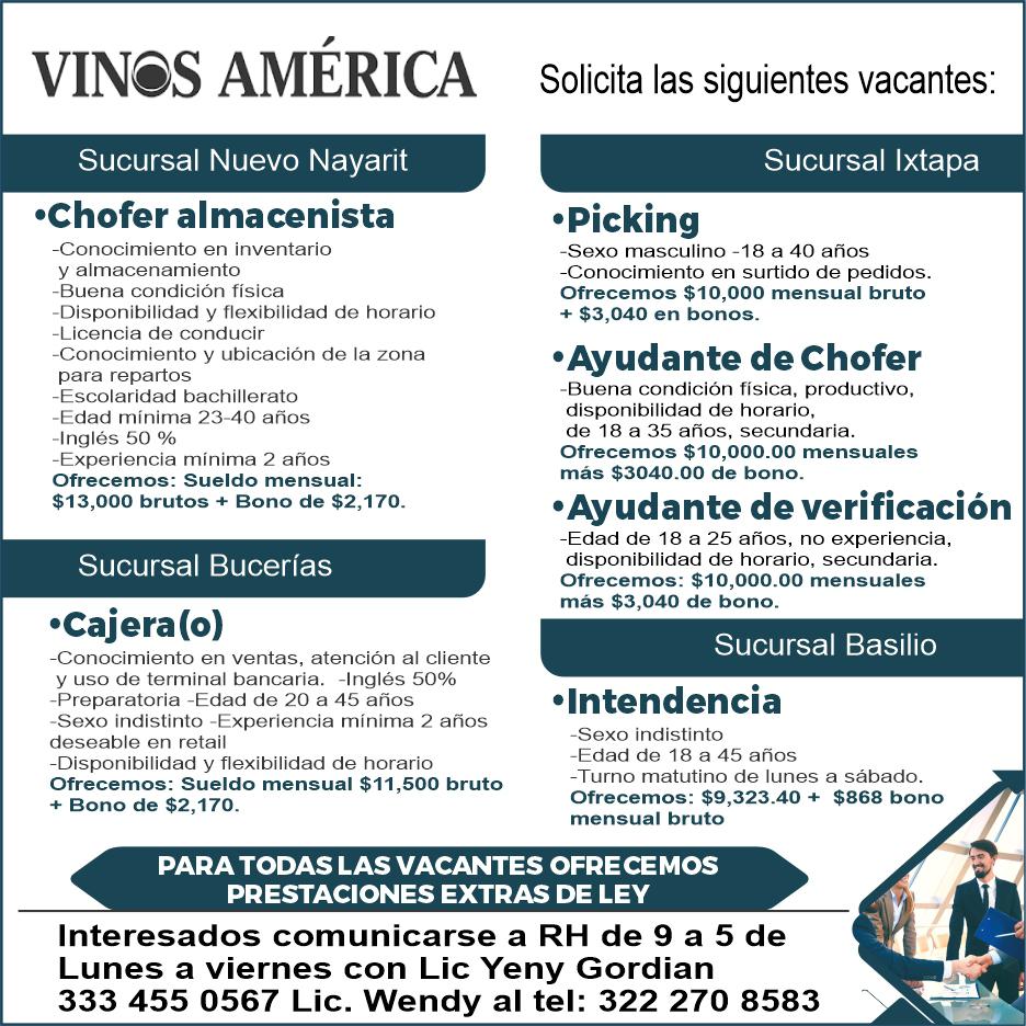 Solicitamos: Auxiliar de almacén, experiencia mínima 1 año, conocimientos básicos en computación, Enviar currículum a cobranzavallarta@ntdingredientes.com / hmendoza@ntd-