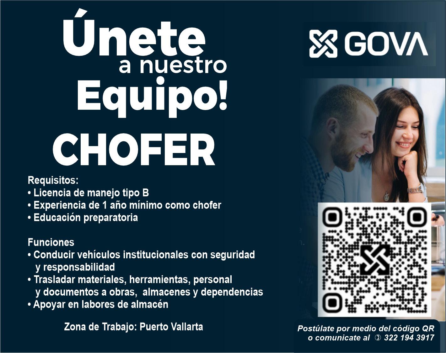 Solicito: Chofer repartidor, con experiencia, licencia de chofer vigente. Inf. 322 28 126-05.+