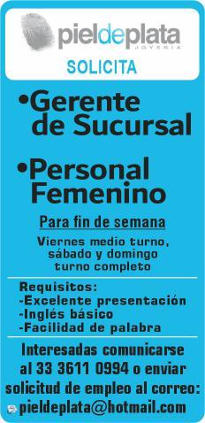 Hostess con buena presentación, responsable. Presentarse con solicitud elaborada y carta de recomendación en Río Guayaquil 413, Col. Lázaro Cárdenas.