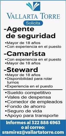 Área de Nuevo Vallarta, solicitamos agente de seguridad