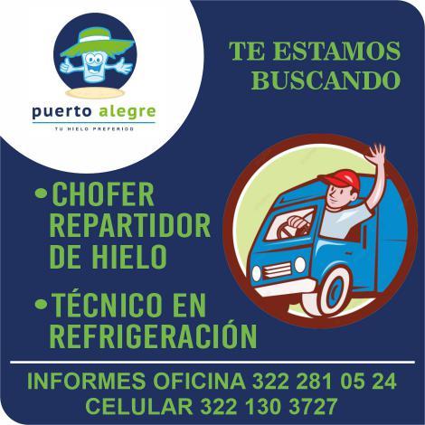 Te estamos buscando: Chofer repartidor de hielo. Informes. 322 28 105-24.+