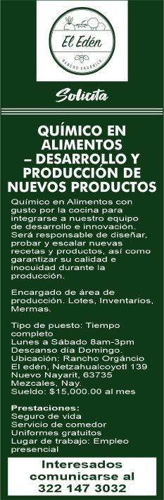 cánico Vespertino, Ayudante de Cocina. Informes al. 329 29 562-12, Ext. 407.+