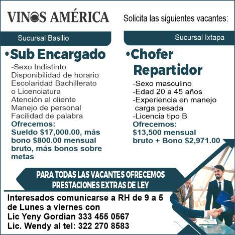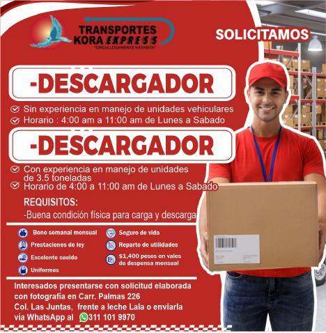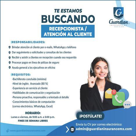 Enviar solicitud o currículum por WhatsApp al. 322 20 560-93.+