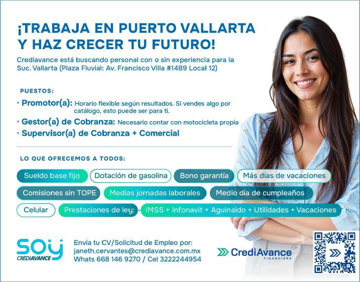 dplasencia.com o trae solicitud a Blvd. Fco. Medina Ascencio 2580. Tel. 322 22 405-56, Ext. 1032.+