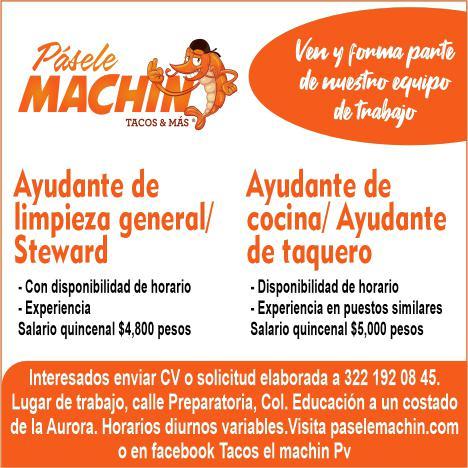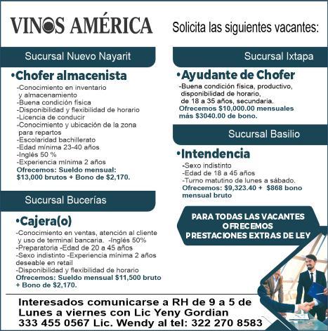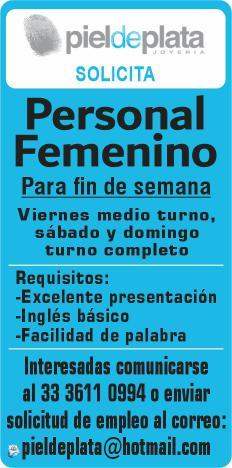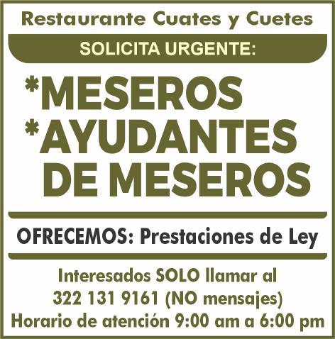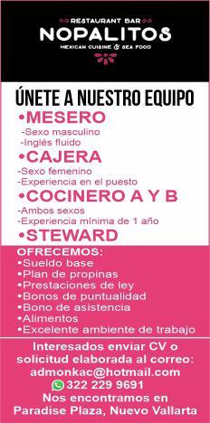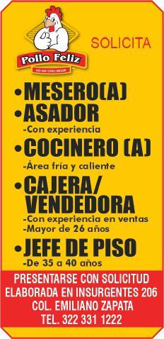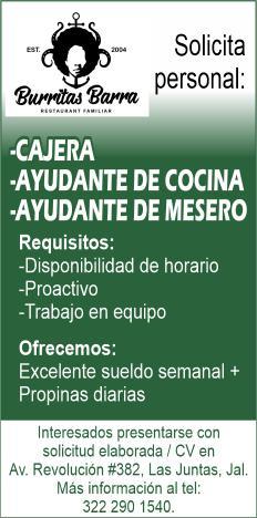 riencia, disponibilidad y responsable. Tel. 322 15 926-93.+
