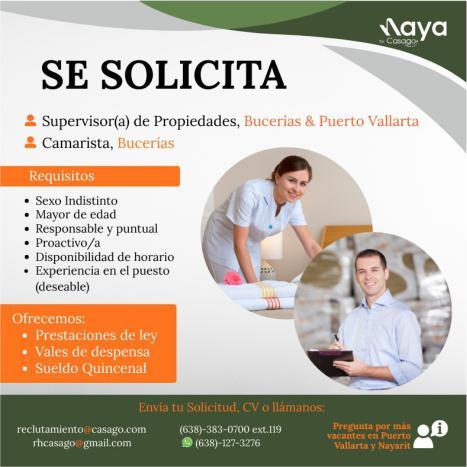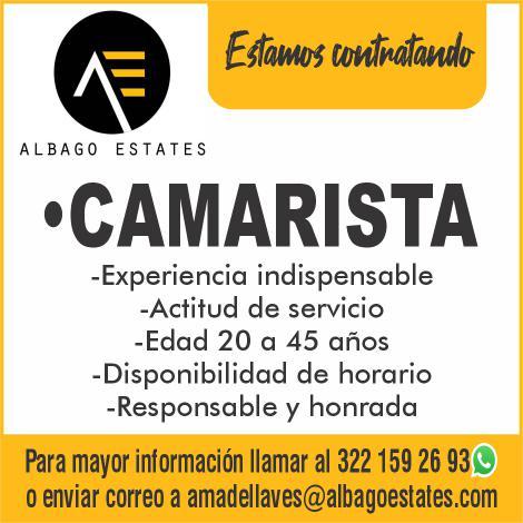 Se solicita camarista con experiencia, disponibilidad y responsable. Tel. 322 15 926-93.+