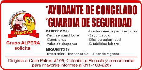 Se solicita ayudante de congelado. Informes. 311 10 322-07.+