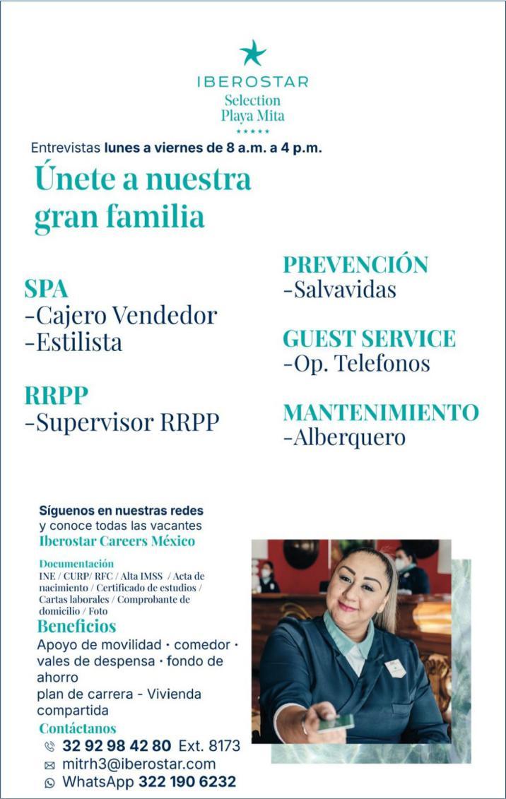 ¡Únete a nuestra gran familia como! Cajero Vendedor, Estilista, Supervisor RRPP, Salvavidas, Op. Teléfonos, Alberquero, contáctanos por WhatsApp al. 322 19 062-32.+