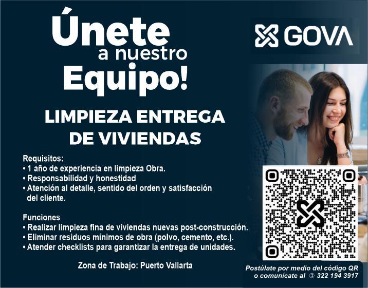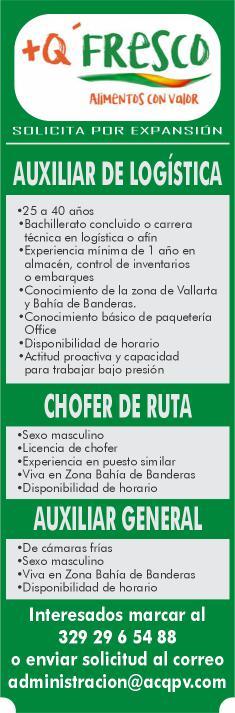 Enviar solicitud o currículum por WhatsApp al. 322 20 56093.+